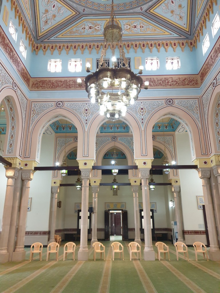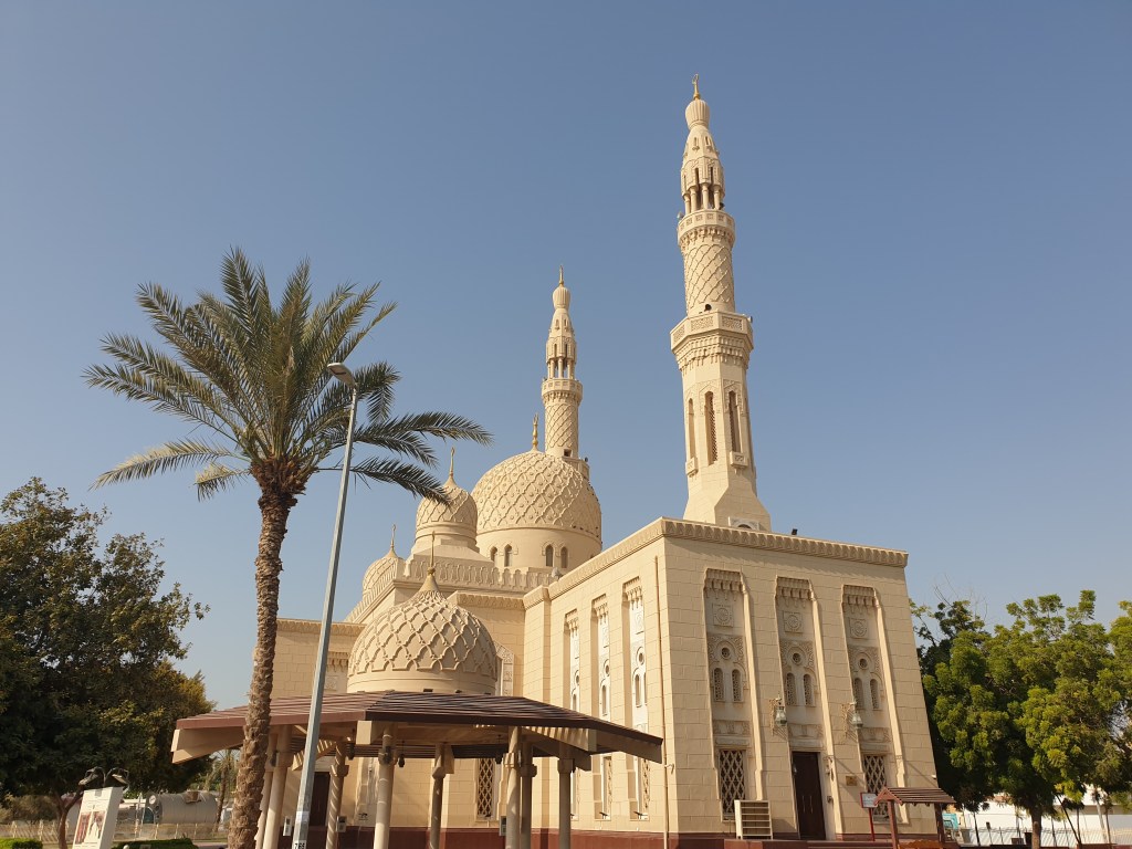 This mosque is located in Dubai in the Emirate of Dubai. It was built between 1975 and 1979 and was a gift from the then ruler of Dubai, Sheikh Rasheed bin Saeed Al Maktoum to his son and heir Sheikh Mohammed bin Rasheed Al Maktoum. It is located in the Jumeirah District along the Persian Gulf. It can accommodate up to 1,200 worshippers.